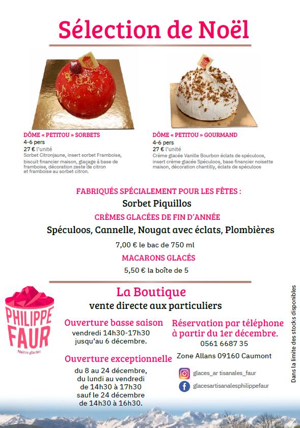 Retrouvez notre carte de Noël : nos entremets sont disponibles à la boutique de l'atelier, à Caumont, tous les après-midi de la semaine jusqu'au 24 décembre !